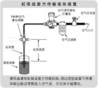 通过改变气体压力下而不改变流率来控制液体雾化。这种混合方式对较高粘度的液体和磨蚀剂悬浮液较为有效。 |