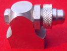 双流体帽型多转环喷雾组件的每个喷雾装置安装在他自己的转环体上。可以使用一个或二个转环体,每个转环体可以旋转360度到所希望的位置。转环体被一个垂直通过组件的不锈钢锁定螺栓定位在适当位置。这个不寻常的紧凑喷雾组件采用1/8英寸NPT或BSPT(内)空气和液体管连接。 |
